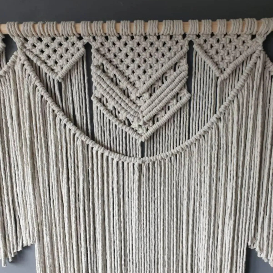 Doğal ağaç dalı üzerine düğüm tekniği ile örülmüştür.
