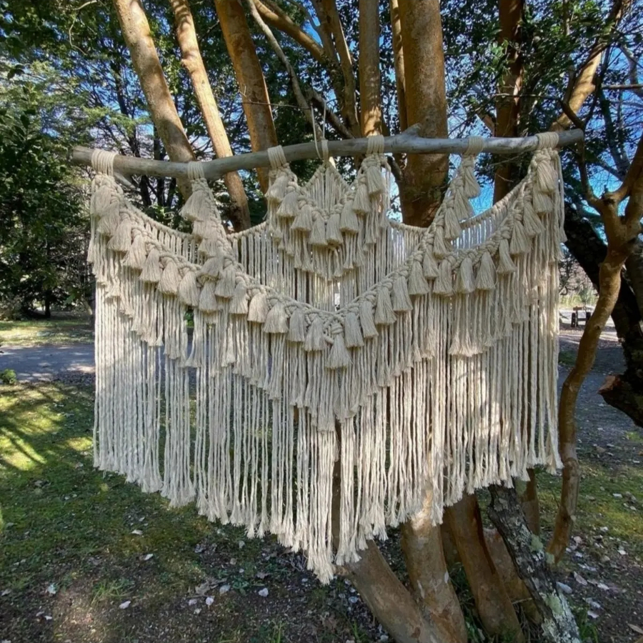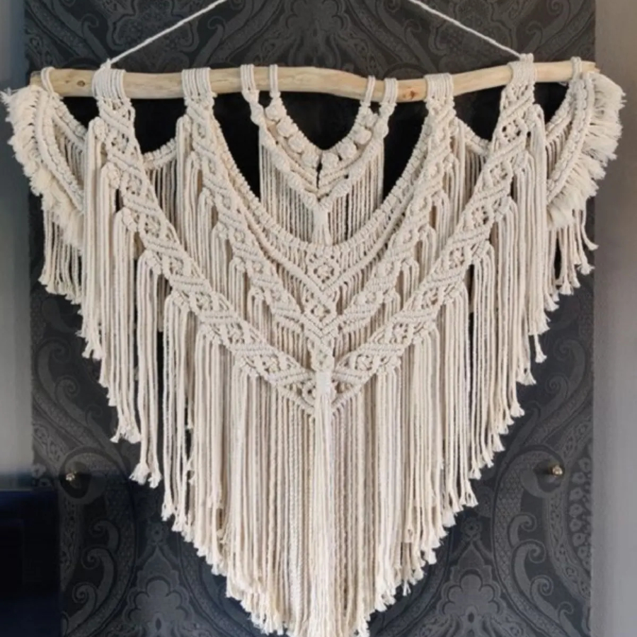 100 cm doğal ağaç dalı üzerine pamuk makrome ipiyle örülmüştür