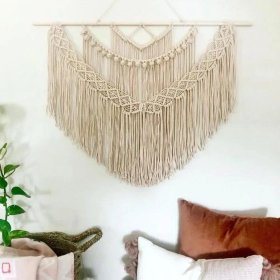 100*80 Cm Yapraklı Bohem Makrome Duvar Dekoru Ekru
