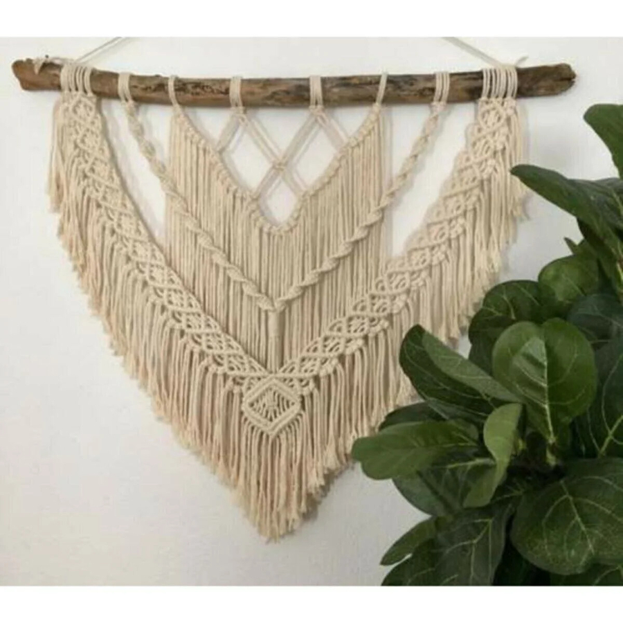 100*80 Cm Yapraklı Sade Şık Makrome Duvar Dekoru Ekru