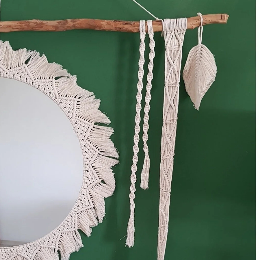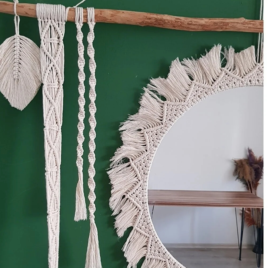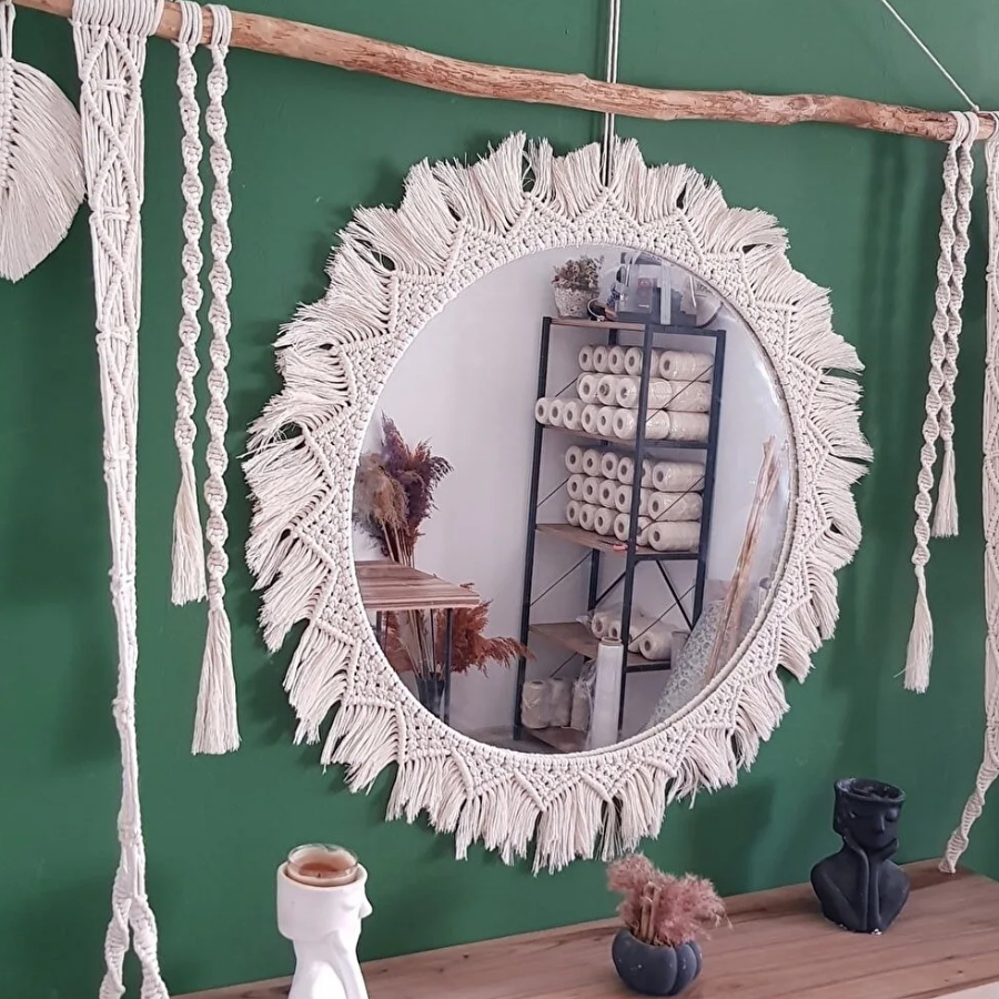 Dekoratif Otantik Bohem Makrome Raflı Makyaj Aynası