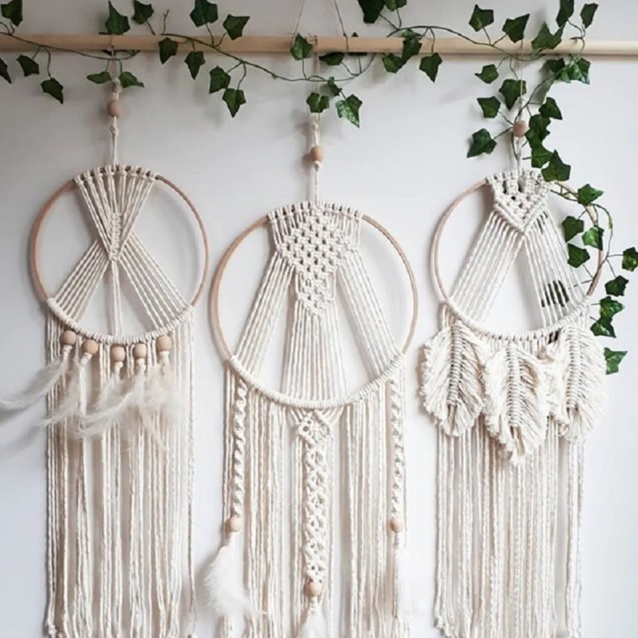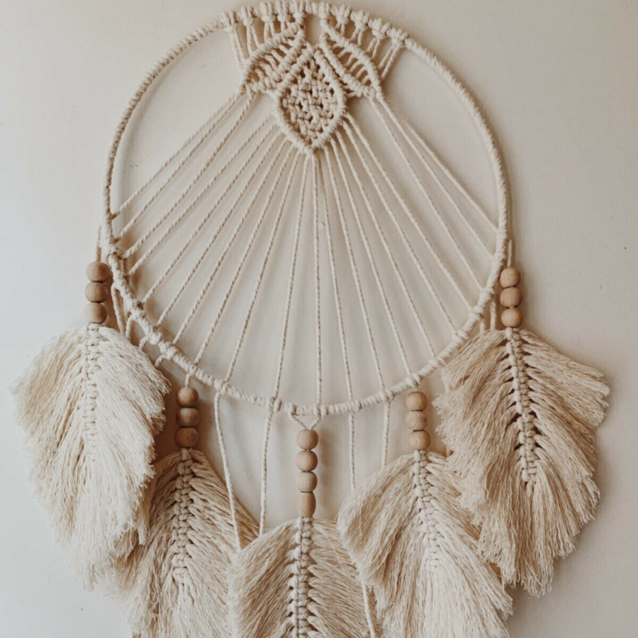 Yapraklı Bohem Makrome Düş Kapanı Ekru
